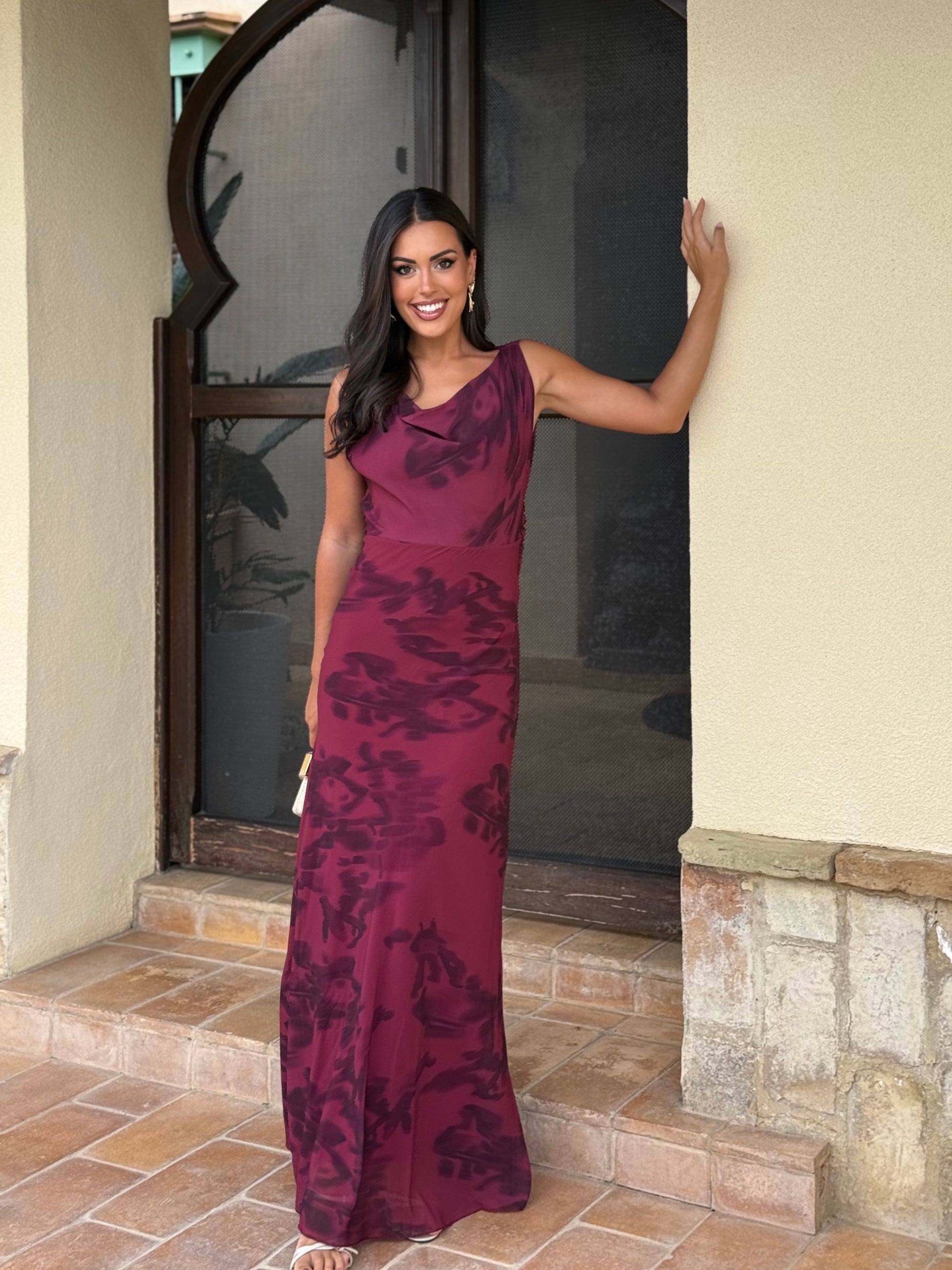 Este vestido tulipán en tono burdeos combina elegancia y sofisticación, ideal para ocasiones especiales. Su corte favorecedor realza la silueta femenina, mientras que el color intenso aporta un toque de distinción. Perfecto para quienes buscan un diseño clásico con un acabado moderno y refinado.